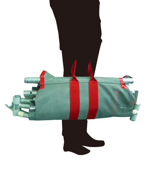 簡単に組み立てや撤収ができ、さらには分離をすると担架としても使用できます。